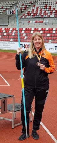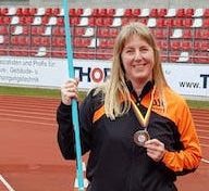 Gleich nach Sandra stand Disziplin drei für Karin an, ebenfalls das Speerwerfen. Mit 12 gemeldeten Teilnehmerinnen ein großes Feld. Also sollte gleich alles passen, um in den Endkampf einzuziehen. Ihre 25.75m aus dem ersten Durchgang konnte sie bei den weiteren 5 Versuchen dieses Mal nicht mehr übertreffen und kam auf Rang vier ein (Platz 1-31.27m / Platz 2-28.55m / Platz 3-27.51m).