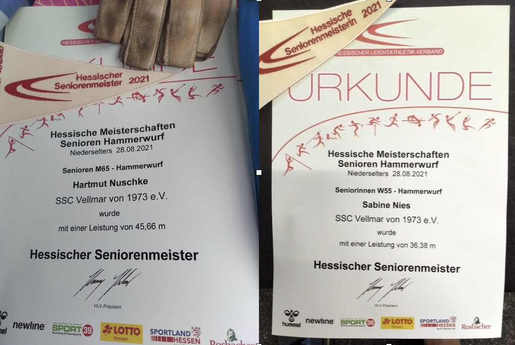 Sabine Nies W55 mit 36,38m + Hartmut Nuschke M65 mit 45,66m  GOLD im Hammerwurf!!!