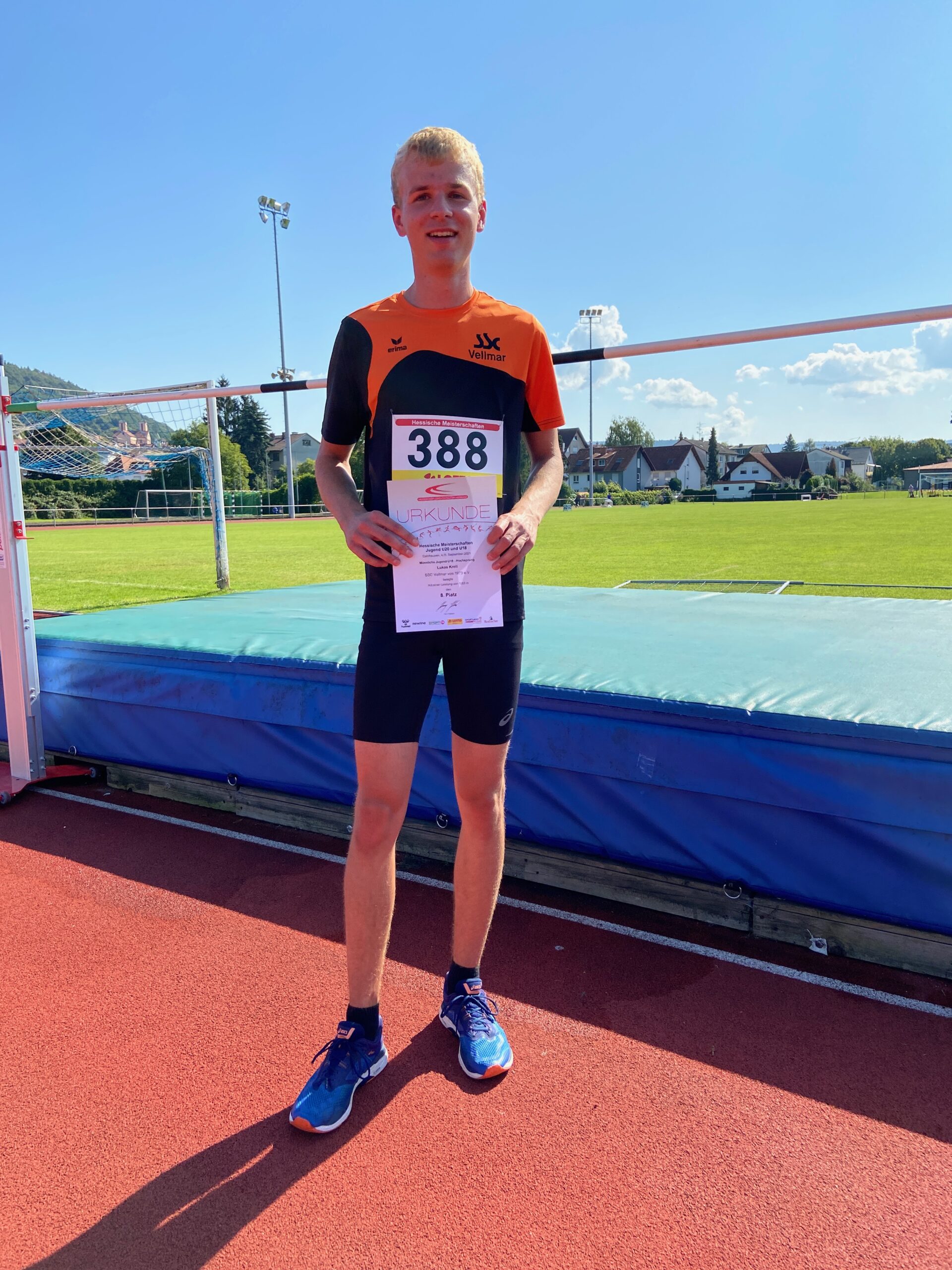 Lukas Kroll MU18 konnte in Gelnhausen nicht die Sprunghöhen aus dem Training erreichen. Durch die Corona-Pandemie fehlten natürlich die sonst üblichen Sprünge unter Wettkampfbedingungen. Dreimal scheiterte er ganz knapp an 1,70m und wurde so mit 1,65m Achter.