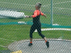 Sabine in wunderschöner Abwurfstellung, der Diskus flog an dem Tag aber nicht auf die gewünschte Weite.