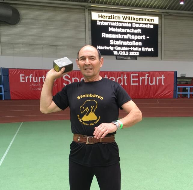 Auf große Fahrt nach Erfurt ging eine kleine Gruppe  Steinstößer um an den deutschen Meisterschaften in der Halle teilzunehmen. Thomas hatte dabei mit der Anreise von der holländischen Grenze den weitesten Weg. Hier die Ergebnisse aus Vellmarer Sicht: Vier Starts mit drei Titeln und persönlicher Bestleistung für Reiner. Und für alle die es nicht mitbekommen haben zur Info nach seiner Hochzeit wurde aus Herrn Schmitt ein Herr Muschkat