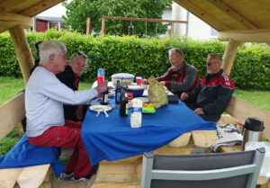 Hier wurden auch die letzten Beine dann langsam schwer. Nach getaner Arbeit wurde sofort der Grill angezündet und es wurde dann der neue Unterstand das erste Mal voll besetzt genutzt.