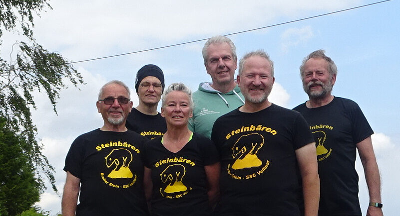 Herrliches Wetter mit viel Wind aber keinen Regen hatten die Vatertagswerfer am Breiten Stein. Mit dem Hammer starteten die Teilnehmer im hohen Gras auf der Wiese.