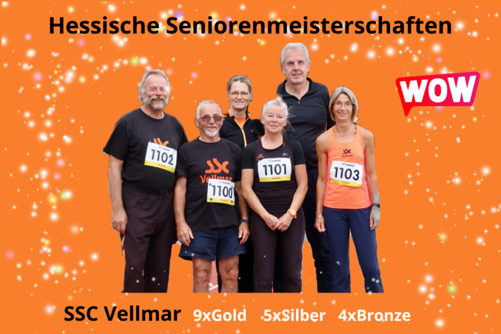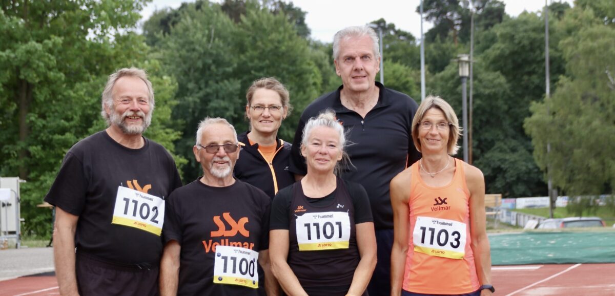 ist immer noch fit wie ein Turnschuh. Bei den „Hessischen“ in Stadtallendorf schlug er nach einer Coronaerkrankung beim Speerwurf Edwin Martin aus Korbach, der gerade erst von den Senioren-Weltmeisterschaften aus Finnland zurück gekommen war, ein Schnippchen, als er mit 26,45m Hessenmeister wurde und stolz bei der Siegerehrung den Meisterwimpel entgegennahm. Doch das reichte dem SSC-Oldie nicht. Noch zweimal wurde er Vizemeister. Den Diskus schleuderte er 24,84m weit, und den Hammer 26,52m. Nach einem sehr langen Wettkampftag (die Veranstaltung dauerte über 9 Stunden) konnte Gerhard genüßlich den Rest der Wegzehrung (leckere Weintrauben), den ihm seine Frau mitgegeben hatte, verzehren.