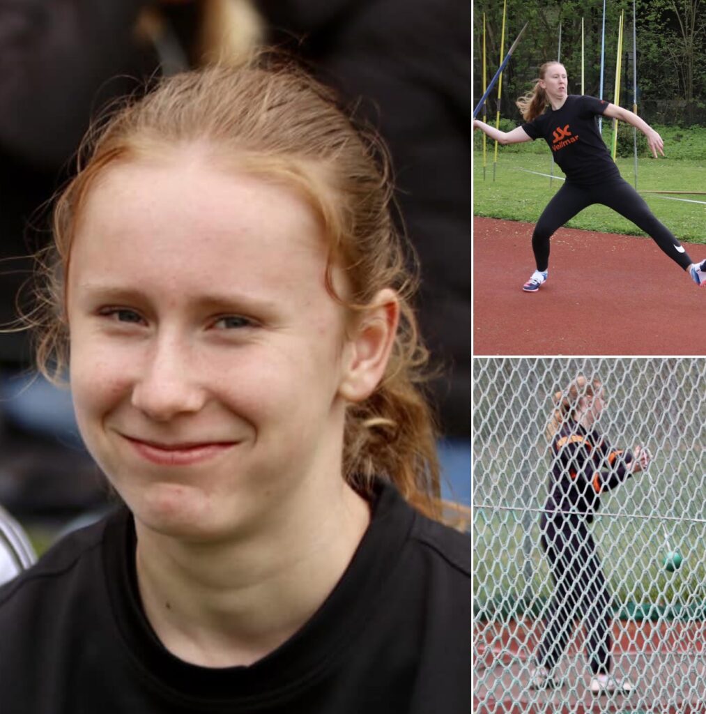 konnte mit ihren Leistungen in Göttingen zufrieden sein, zumal ihre eigentlichen Stärken neben der Vielseitigkeit Sprints, Hürden und Weitsprung sind. Sie stieß die Kugel mit 9,15m in die Nähe ihrer Bestleistung, der Diskus flog 20,12m weit. Pers. Bestleistungen dann mit dem Speer und Hammer mit 25,07m bzw. 19,39m. Das war sehr erfreulich und lag in der Luft. Den Hammerwurf hatte Dana nur einmal trainiert, es war ihr zweiter Wettkampf. Ein gelungener Wettkampftag.