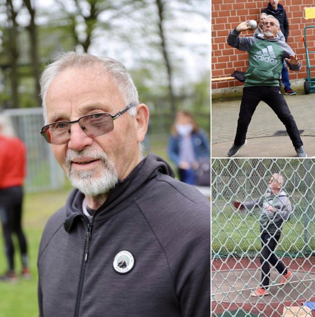 ist noch noch fit wie ein Turnschuh. Nachdem er den Speer 26.16m schleuderte, folgten 25,47 mit dem Diskus, 9,21 mit der Kugel und 26,48m mit dem Hammer. Er wurde Dreifachsieger, nur im Kugelstoßen musste er sich hauchdünn als Zweiter geschlagen geben. Mit 25,96 (Diskus) ist Gerhard auf Platz 3 der deutschen Bestenliste zu finden, im Hammer- und Speerwurf unter den Top ten.