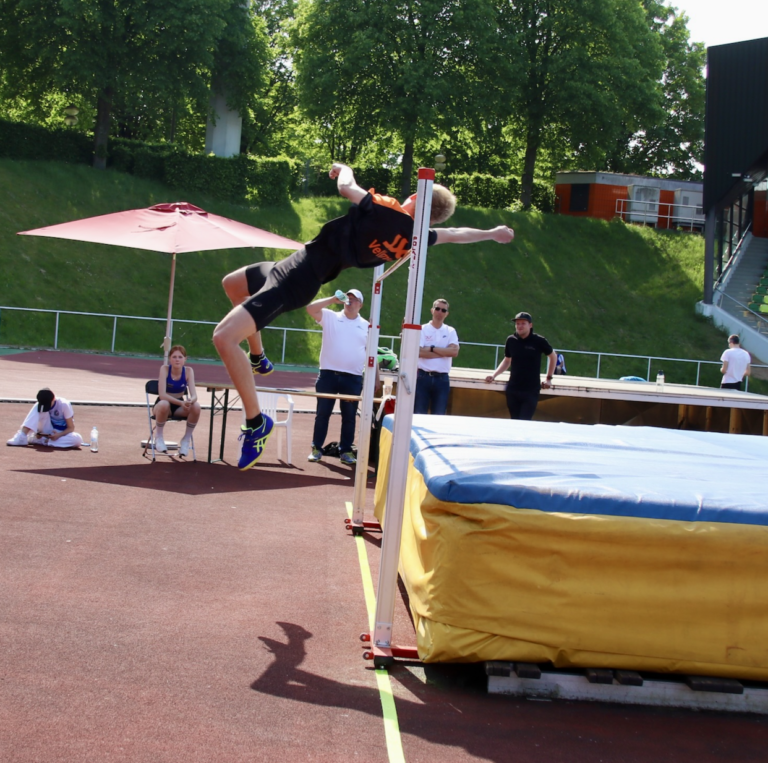 laborierte 9 Monate an einer hartnäckigen Verletzung der ischiocrualen Muskulatur, sprinten und springen war unmöglich. Jetzt findet er wieder langsam (trotz Abistress wie Janina) seine Form. Nach zweimaligem Hochsprungtraining flopte Lukas als Sieger über 1,75m und riss 1,80m nur hauchdünn. Es geht wieder aufwärts.