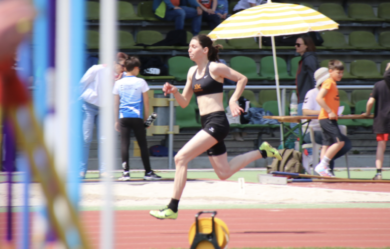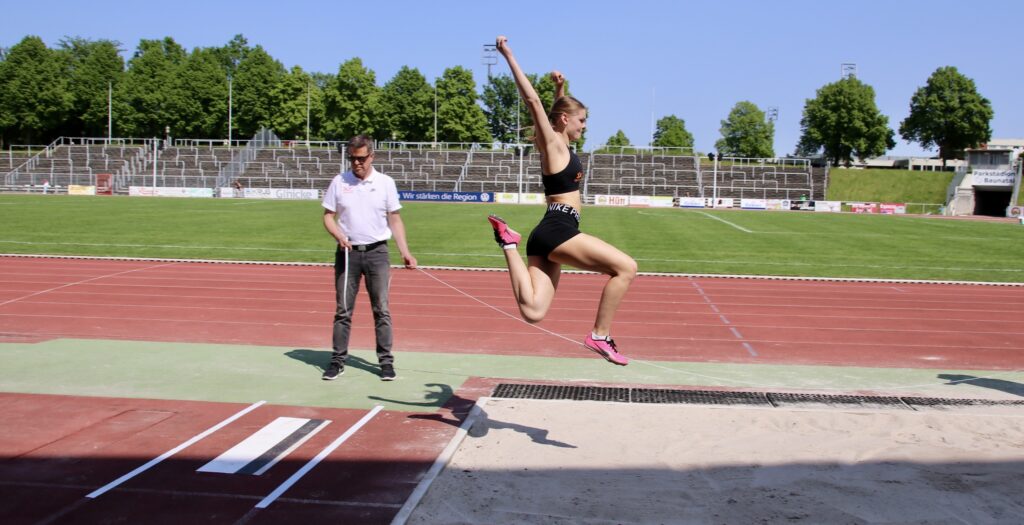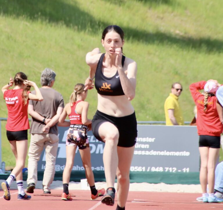 gewann beim Pfingstsportfest in Baunatal den Weitsprung mit 5,48m. Im 100m Lauf (13.06s.) und dem Hochsprung mit guten 1,64m wurde sie jeweils Zweite. Vielleicht fehlte etwas die Frische, denn vor ihren Wettkämpfen betreute sie die u.a. von ihr trainierten U12 Kids.