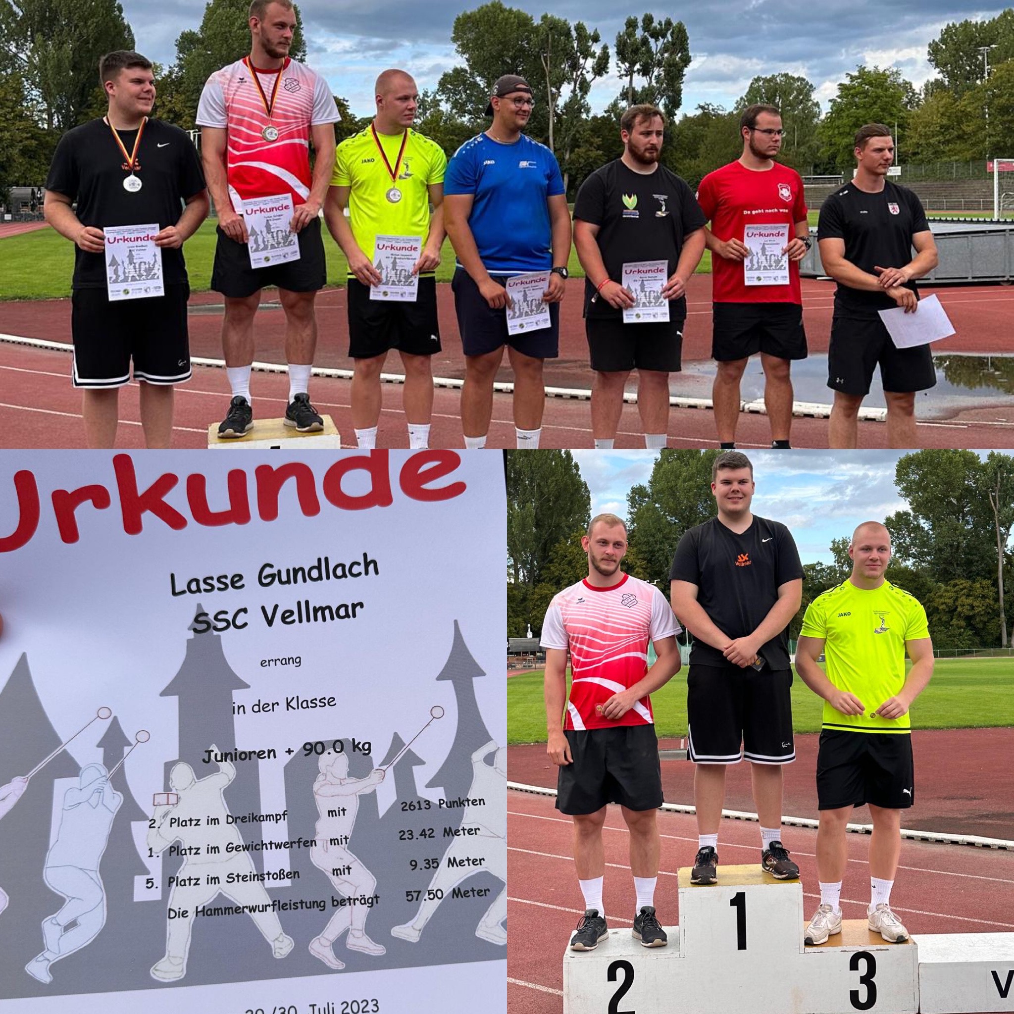 DEUTSCHE MEISTERSCHAFT DRTV Junioren in Waiblingen- LASSE GUNDLACH wirft dreimal pB in Waiblingen, DEUTSCHER MEISTER im Gewichtwurf, Deutscher Vizemeister im Dreikampf (3 Pünktchen bis zum 1. Platz ), Steinstoßen Platz 5.
