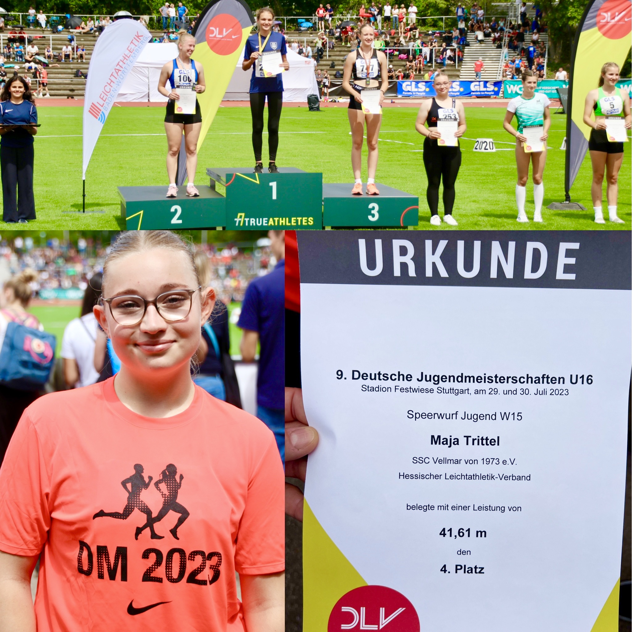 Maja Trittel Platz 4 bei der DM im Speerwurf W15 mit 41,61m!!! und Platz 9 im Diskuswurf mit 32,10m!!