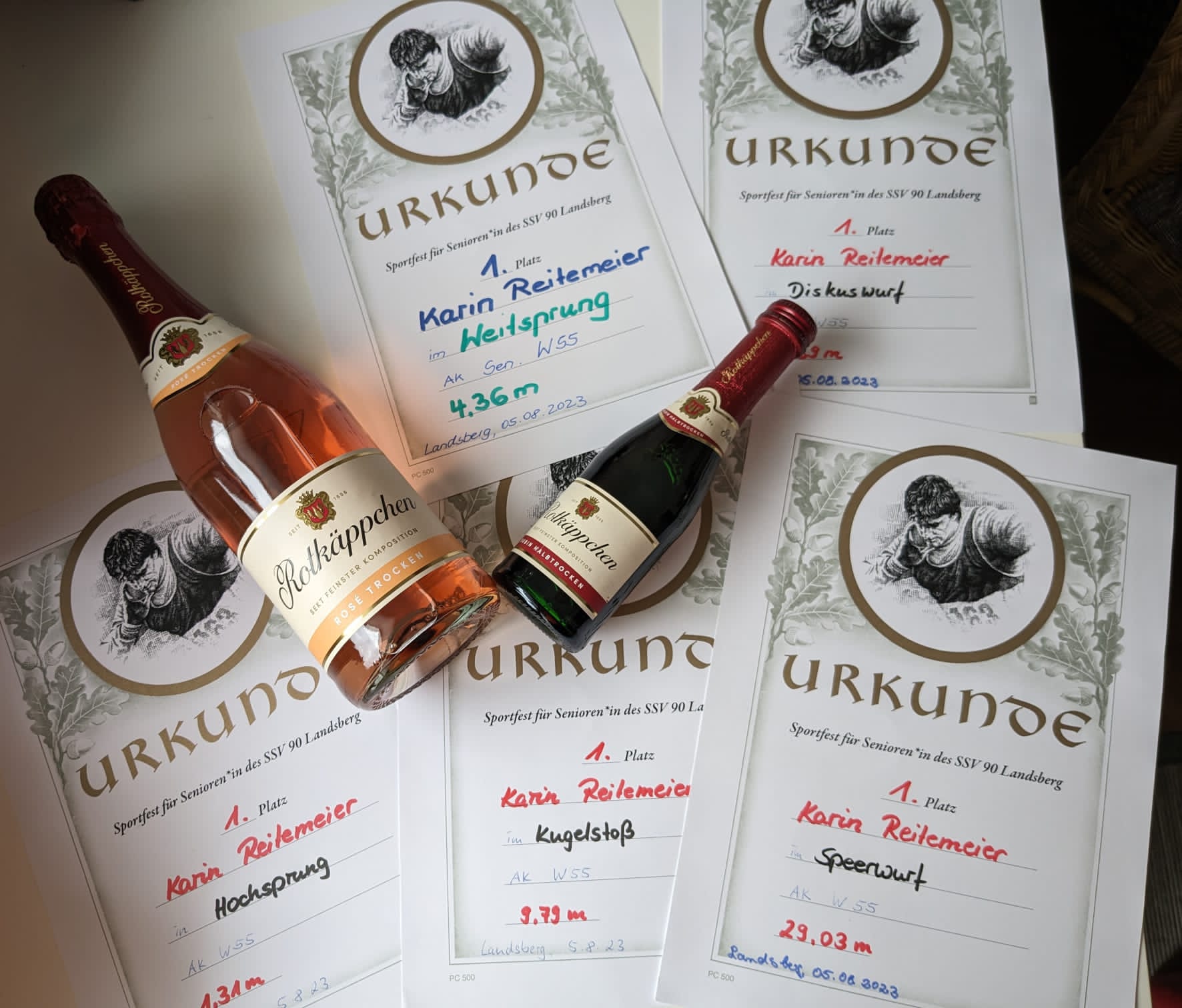 Karin konnte in Landsberg gleich 3 neue Meeting-Rekorde aufstellen. Im Hochsprung gelang ihr dies mit 1,31m, beim Weitsprung mit 4,36m, im Kugelstoßen mit 9,79m und im Speerwurf mit 29,03m!!! Abgerundet wurde das ganze mit 22,69m im Diskuswurf.
