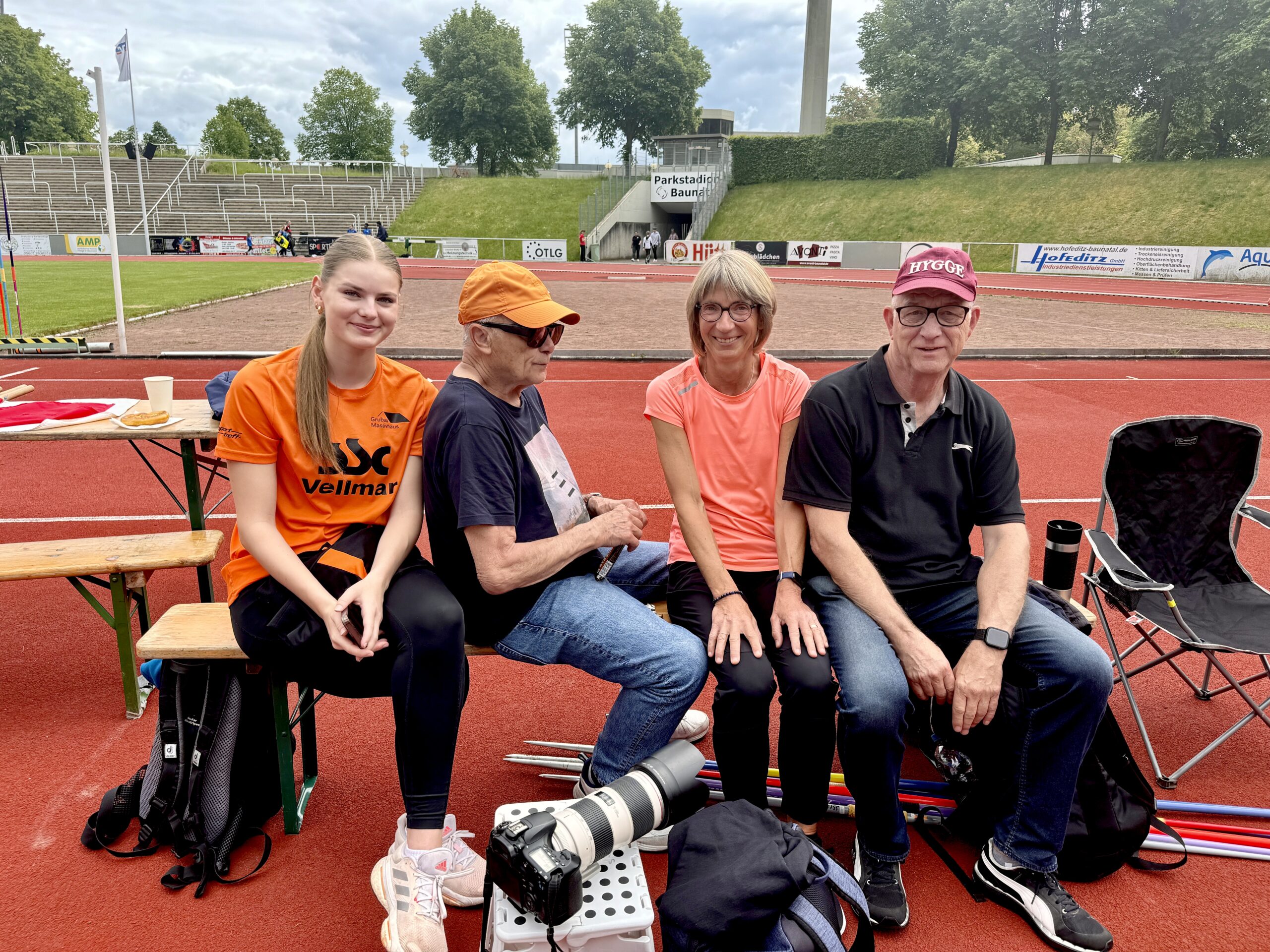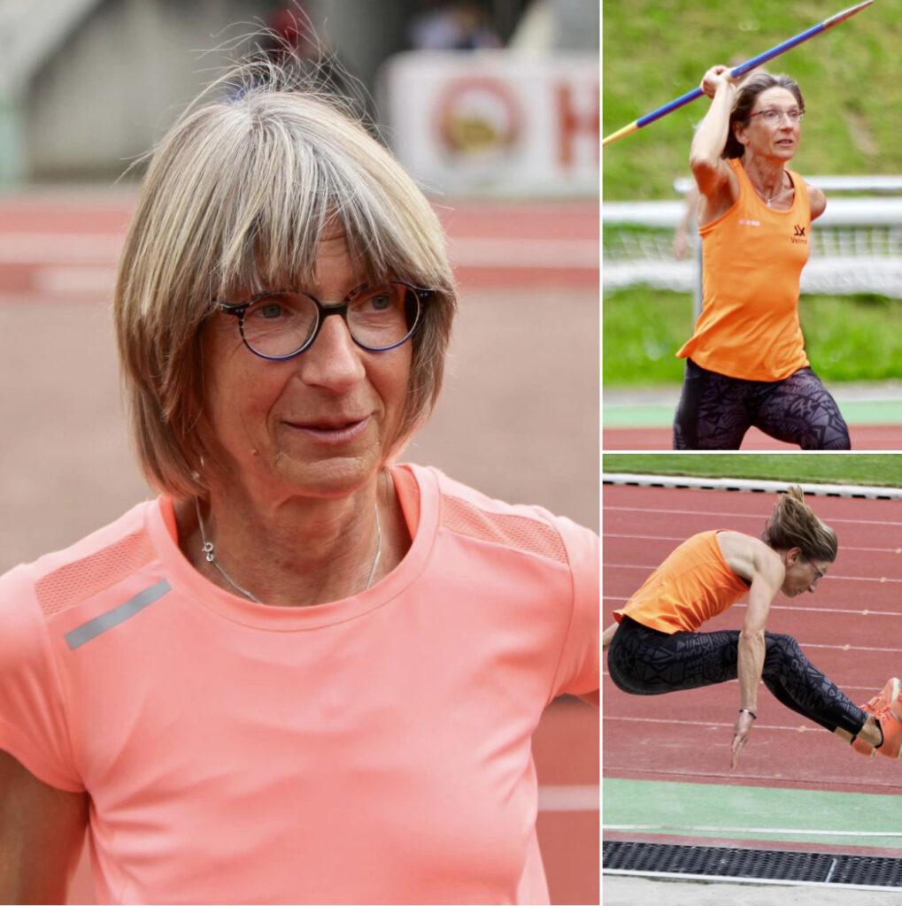 präsentierte sich in Baunatal in hervorragender Verfassung. Als Siegerin beim Speerwurf kam sie mit 27,91m bis auf 1,40m an ihre diesjährige Bestleistung heran, mit der sie auf Platz 2 der Deutschen Bestenliste rangiert. Top auch der Weit-und Hochsprung mit 4,41 bzw. 1,29m, womit sie in Deutschland zur Zeit Dritte ist, trotzdem in Baunatal jeweils „nur“ Zweite hinter Marion Tenbusch (Korbach) wurde, die in diesem Jahr zur AK55 hochgestuft wurde. Beim Hochsprung überquerten Beide 1,29m. Aufgrund der Mehrversuchsregel gewann Marion, im Weitsprung lag Karin, die ab 2025 eine Sechzigerin ist, ein 1 cm hinter Marion.