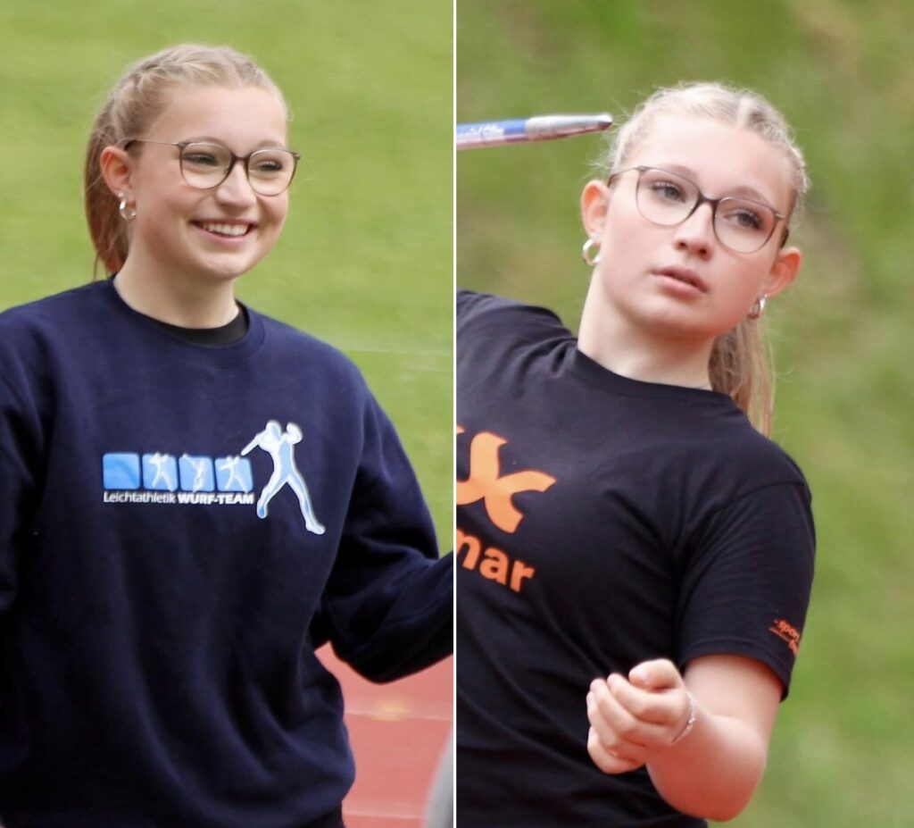 glänzte erneut, als sie in Baunatal den Speer 42,47m warf. Trotzdem war sie nicht richtig zufrieden, weil nur der erste Versuch gut gelang. Weiten über 40m sind zur Zeit Standard für Maja.