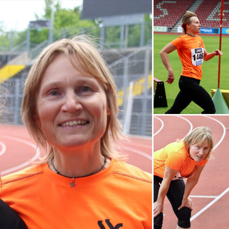 war vor 1/4 Jahrhundert eine gute Leichtathletin. Jetzt hat sie wieder mit dem Trainung begonnen und als 50-igerin bei den „Nordhessischen“ gleich einen Doppelstart hingelegt. Als zweifache Meisterin durchlief sie die 100m in 16.35s und die Doppeldistanz in 34.61s, was sehr beachtlich ist.