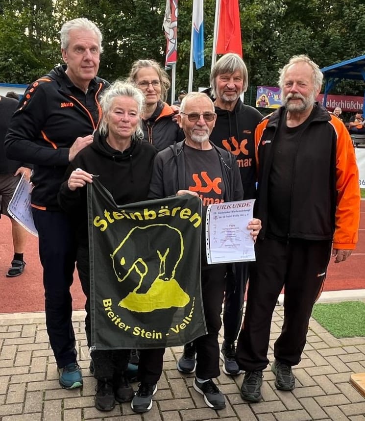 6 SSC-Athleten nahmen tlw. bereits schon am Freitag die weite Fahrt auf sich, um wieder einmal bei diesem tollen Event zu starten. Für Gerhard Niemeyer M80 und Dr. Peter Gall M65 war es der erste Start vor Ort. Andere wie Carmen Krug W55, Sabine Nies W60, Hendrik Schaak M65 und Hartmut Nuschke M65 sind Wiederholungsstarter. Es galt einen Sechskampf (Hammer, Kugel, Diskus, Speer, Schleuderball, Keule) und einen Leichtathletik-Wurf-Fünfkampf (Hammer, Kugel, Diskus, Speer und Gewichtwurf) zu absolvieren. Die ersten vier Disziplinen wurden für das 5Kampf-Ergebnis herangezogen, der fehlende Gewichtwurf wurde zum Schluss der Veranstaltung noch als Zusatzeinlage angeboten. Dieses Angebot nahmen fast über die Hälfte der 58 gemeldeten Teilnehmer an. Wie immer waren die Anlagen bestens vorbereitet, ein schönes, kleines Stadion.